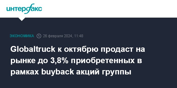 Globaltruck к октябрю продаст на рынке до 3,8% приобретенных в рамках buyback акций группы