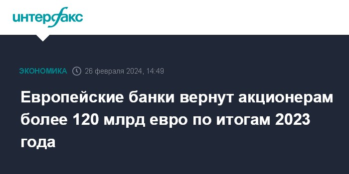 Европейские банки вернут акционерам более 120 млрд евро по итогам 2023 года