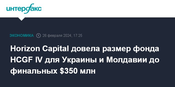Москва. 26 февраля. INTERFAX.RU - Американская компания по управлению фондами прямых инвестиций Horizon Capital, сообщила, что суммарно привлекла от международных инвесторов $350 млн в новый фонд Horizon Capital Growth Fund IV (HCGF IV) для инвестирования в быстрорастущие технологические и экспортно-ориентированные средние предприятия на Украине и в Молдавии.