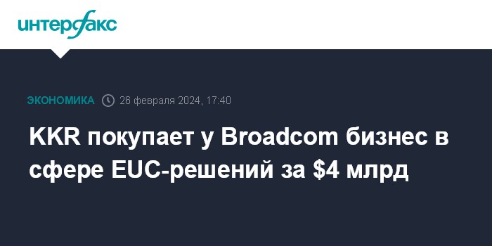 Москва. 26 февраля. INTERFAX.RU - Американская инвесткомпания KKR & Co. покупает у Broadcom Inc. бизнес в сфере EUC-решений (вычислительные возможности для конечных пользователей) за $4 млрд.