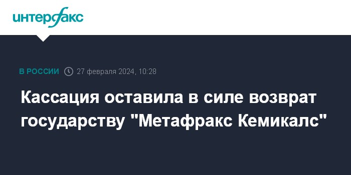 Кассация оставила в силе возврат государству "Метафракс Кемикалс"