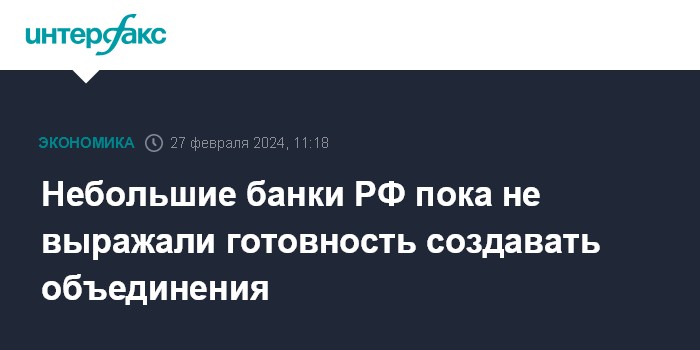 Небольшие банки РФ пока не выражали готовность создавать объединения