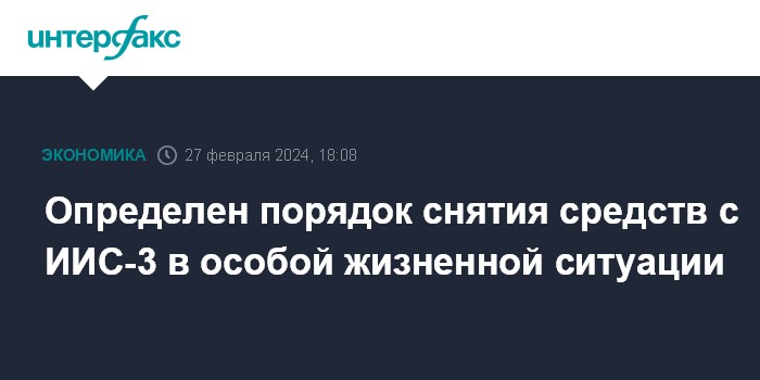 Москва. 27 февраля. INTERFAX.RU - Банк России подготовил проект указания, которым определяется порядок и сроки получения средств c индивидуального инвестиционного счета третьего типа (ИИС-3) в случае особой жизненной ситуации.