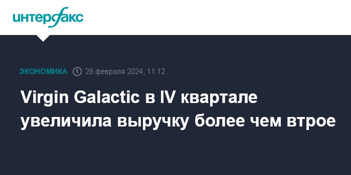Москва. 28 февраля. INTERFAX.RU - Аэрокосмическая компания британского миллиардера Ричарда Брэнсона Virgin Galactic нарастила выручку в четвертом квартале 2023 года более чем втрое и сократила чистый убыток почти в 1,5 раза.