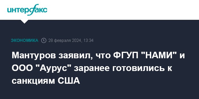 Мантуров заявил, что ФГУП "НАМИ" и ООО "Аурус" заранее готовились к санкциям США