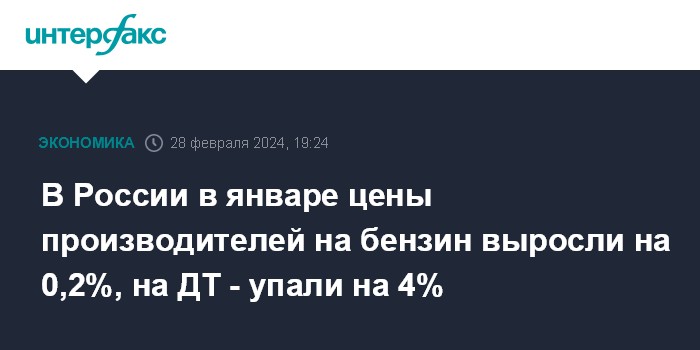 В России в январе цены производителей на бензин выросли на 0,2%, на ДТ - упали на 4%