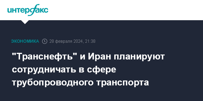 "Транснефть" и Иран планируют сотрудничать в сфере трубопроводного транспорта