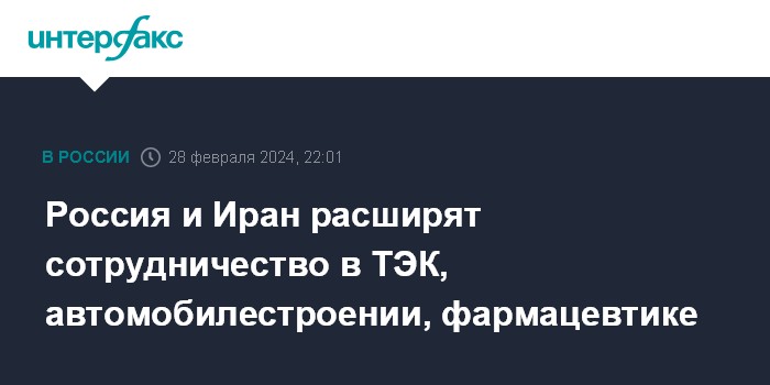 Россия и Иран расширят сотрудничество в ТЭК, автомобилестроении, фармацевтике