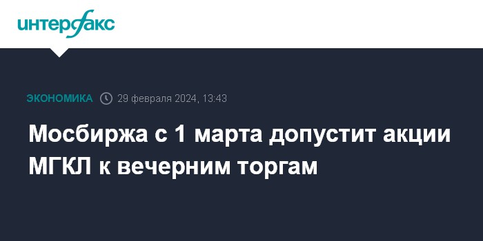 Мосбиржа с 1 марта допустит акции МГКЛ к вечерним торгам