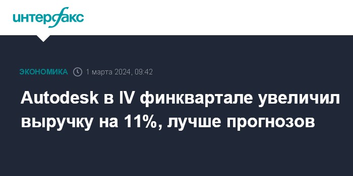 Autodesk в IV финквартале увеличил выручку на 11%, лучше прогнозов
