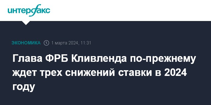 Глава ФРБ Кливленда по-прежнему ждет трех снижений ставки в 2024 году