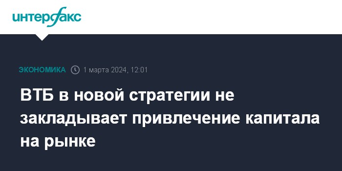 ВТБ в новой стратегии не закладывает привлечение капитала на рынке