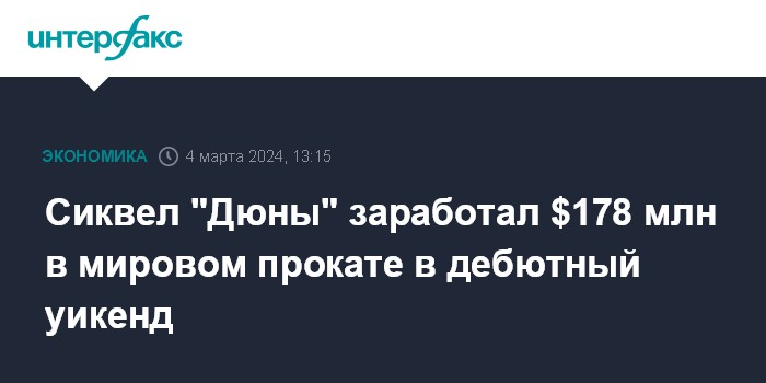 Сиквел "Дюны" заработал $178 млн в мировом прокате в дебютный уикенд