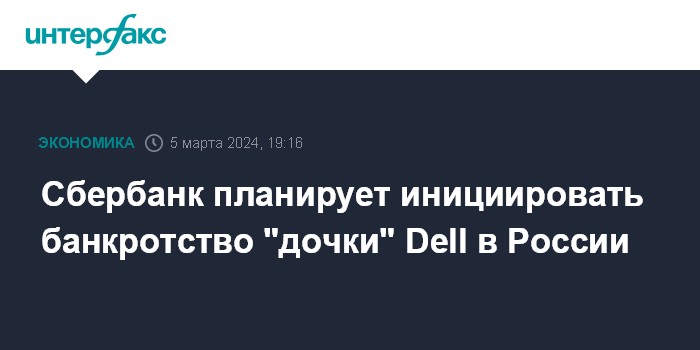 Сбербанк планирует инициировать банкротство "дочки" Dell в России