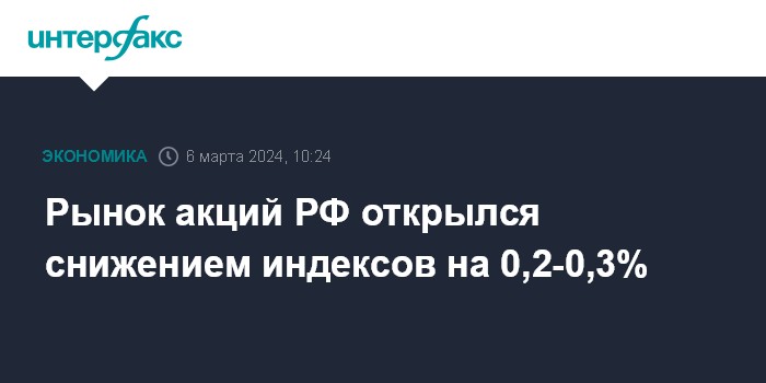 Рынок акций РФ открылся снижением индексов на 0,2-0,3%