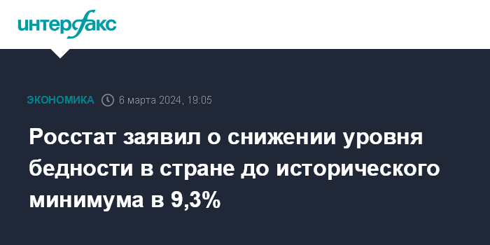 Уровень бедности в стране в 2023 году составил исторически минимальные 9,3% после 9,8% в 2022 году.