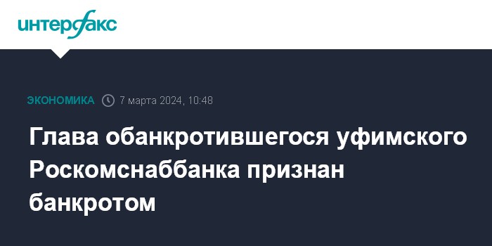 Глава обанкротившегося уфимского Роскомснаббанка признан банкротом