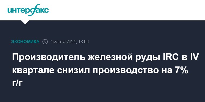 Производитель железной руды IRC в IV квартале снизил производство на 7% г/г