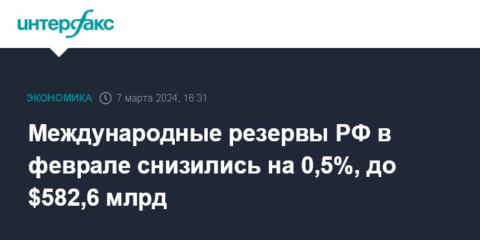 Международные резервы РФ в феврале снизились на 0,5%, до $582,6 млрд