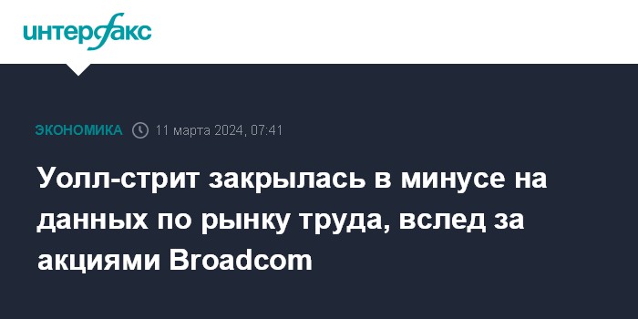 Уолл-стрит закрылась в минусе на данных по рынку труда, вслед за акциями Broadcom