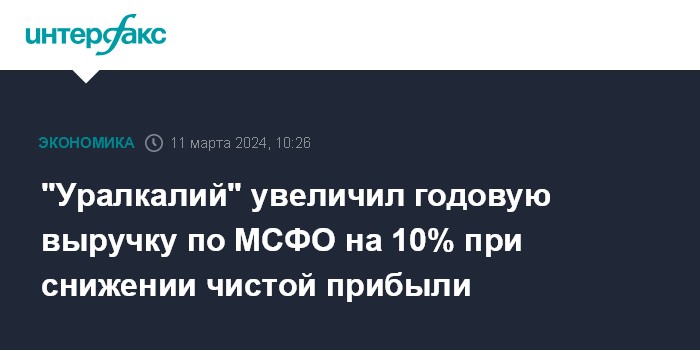 "Уралкалий" увеличил годовую выручку по МСФО на 10% при снижении чистой прибыли