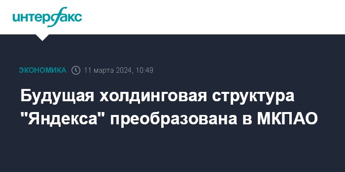 Москва. 11 марта. INTERFAX.RU - МКАО "Яндекс", которое станет холдинговой структурой "Яндекса" после завершения реструктуризации, получило статус МКПАО, говорится в данных ЕГРЮЛ.