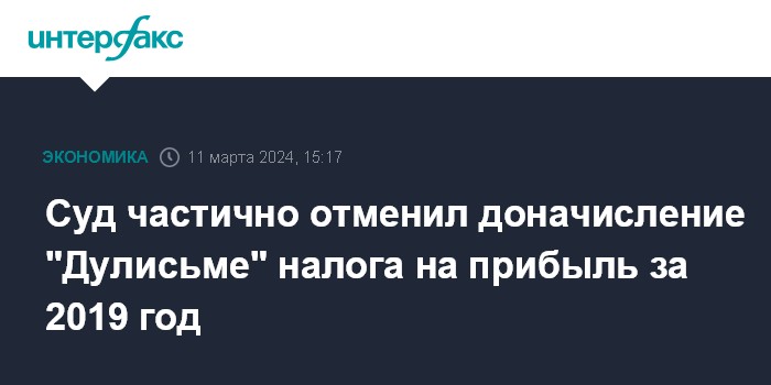 Суд частично отменил доначисление "Дулисьме" налога на прибыль за 2019 год