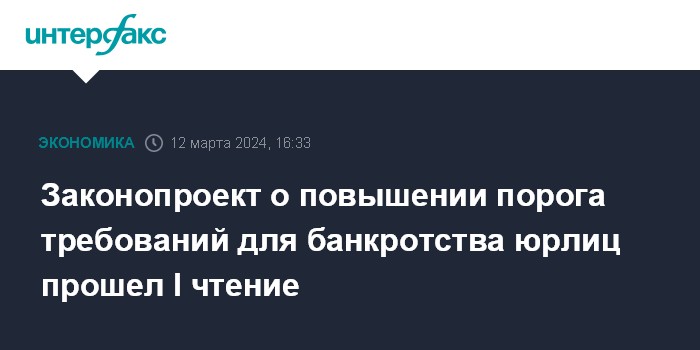 Законопроект о повышении порога требований для банкротства юрлиц прошел I чтение
