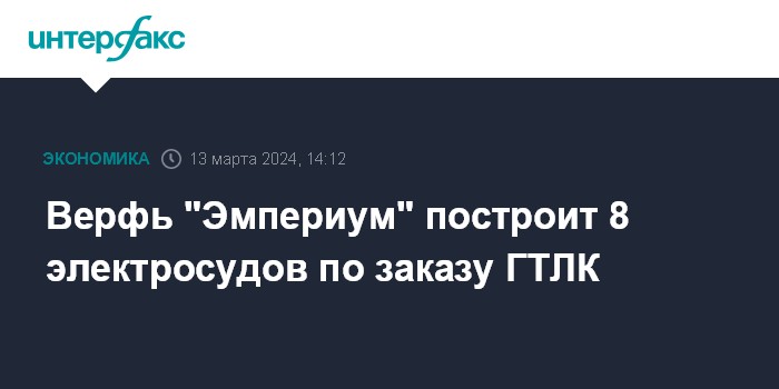 Верфь "Эмпериум" построит 8 электросудов по заказу ГТЛК