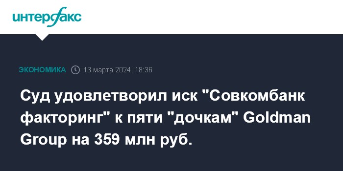 Суд удовлетворил иск "Совкомбанк факторинг" к пяти "дочкам" Goldman Group на 359 млн руб.
