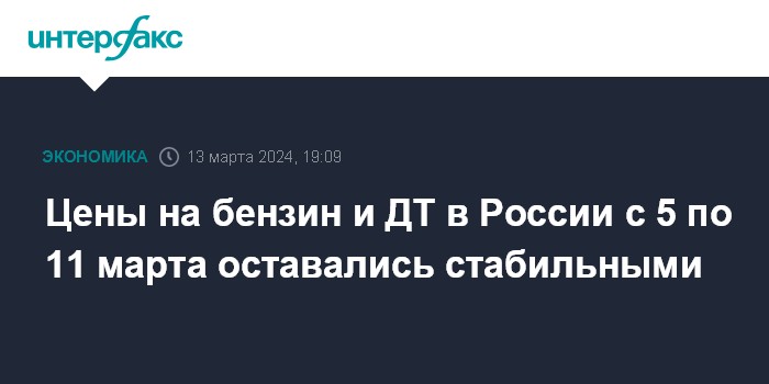 Цены на бензин и ДТ в России с 5 по 11 марта оставались стабильными