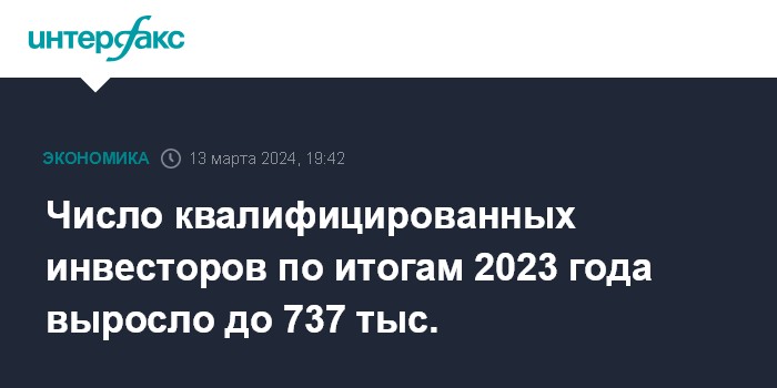 Число квалифицированных инвесторов по итогам 2023 года выросло до 737 тыс.