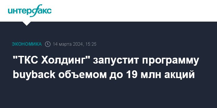 "ТКС Холдинг" запустит программу buyback объемом до 19 млн акций