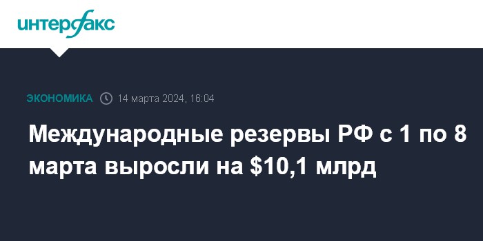 Международные резервы РФ с 1 по 8 марта выросли на $10,1 млрд