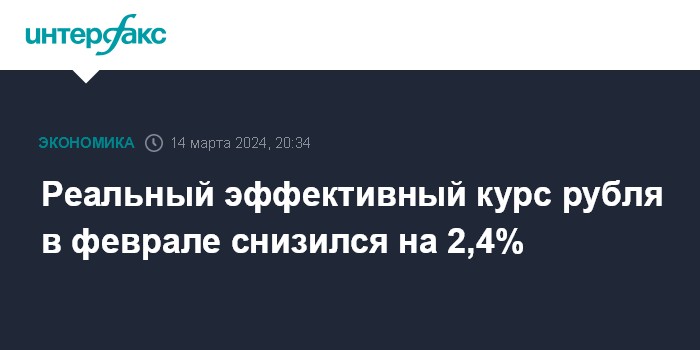 Москва. 14 марта. INTERFAX.RU - Реальный эффективный курс рубля к корзине валют государств - основных торговых партнеров России в феврале 2024 года снизился на 2,4% по отношению к январю, согласно предварительной оценке ЦБ РФ, опубликованной на его сайте.