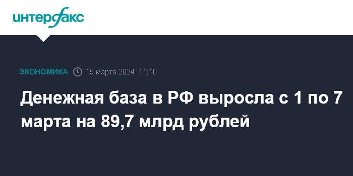 Денежная база в РФ выросла с 1 по 7 марта на 89,7 млрд рублей