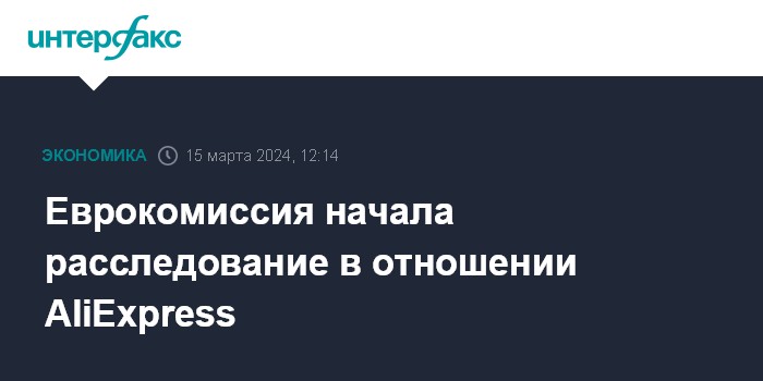 Москва. 15 марта. INTERFAX.RU - Европейская комиссия (ЕК) начала расследование в отношении платформы электронной торговли AliExpress, принадлежащей китайскому технологическому гиганту Alibaba, из-за опасений, что компания не принимает адекватных мер для предотвращения распространения нелегальных товаров и незаконного контента в интернете, говорится в сообщении регулятора.