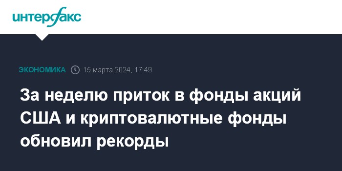 За неделю приток в фонды акций США и криптовалютные фонды обновил рекорды