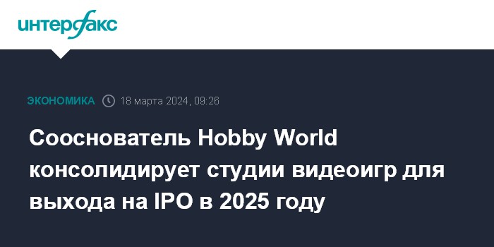 Сооснователь Hobby World консолидирует студии видеоигр для выхода на IPO в 2025 году