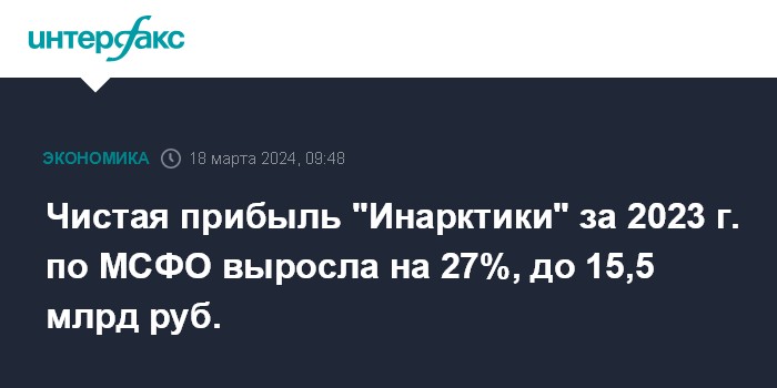Чистая прибыль "Инарктики" за 2023 г. по МСФО выросла на 27%, до 15,5 млрд руб.