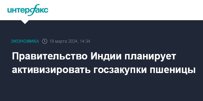 Москва. 18 марта. INTERFAX.RU - Правительство Индии планирует активизировать закупки пшеницы в государственный фонд. Однако трейдеры опасаются, что вероятный рост государственных закупок может привести к ограничению предложения на внутреннем рынке страны, пишет агентство S&P.