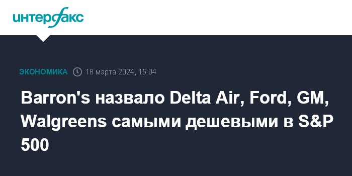 Barron's назвало Delta Air, Ford, GM, Walgreens самыми дешевыми в S&P 500