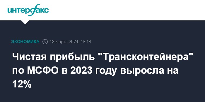 Москва. 18 марта. INTERFAX.RU - Чистая прибыль ПАО "Трансконтейнер" (входит в ГК "Дело") по МСФО в 2023 году выросла на 11,7% по сравнению с 2022 годом, до 20,014 млрд руб., говорится в отчете компании.