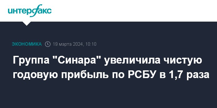 Москва. 19 марта. INTERFAX.RU - Группа "Синара" в 2023 году получила чистую прибыль по РСБУ в размере 16,3 млрд рублей, что в 1,7 раза больше, чем в 2022 году, говорится в отчетности компании.