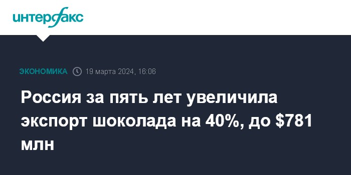 Россия за пять лет увеличила экспорт шоколада на 40%, до $781 млн