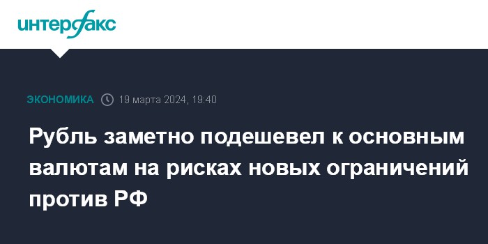 Как отмечают эксперты "Интерфакс-ЦЭА", рубль заметно подешевел в основных валютных парах по итогам торгов во вторник на фоне очередного усиления рисков введения новых антироссийских ограничений со стороны западных стран. В то же время, поддержку рублю продолжают оказывать подготовка компаний-экспортеров к налоговым выплатам марта, жесткая денежно-кредитная политика Банка России, продажа валюты в рамках бюджетного правила и высокие цены на нефть.