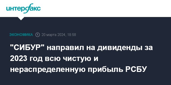 "СИБУР" направил на дивиденды за 2023 год всю чистую и нераспределенную прибыль РСБУ