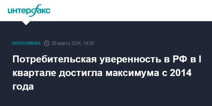 Потребительская уверенность в РФ в I квартале достигла максимума с 2014 года