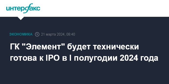ГК "Элемент" будет технически готова к IPO в I полугодии 2024 года