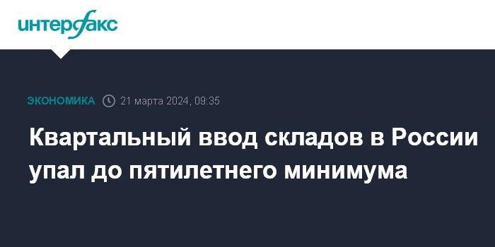 Квартальный ввод складов в России упал до пятилетнего минимума